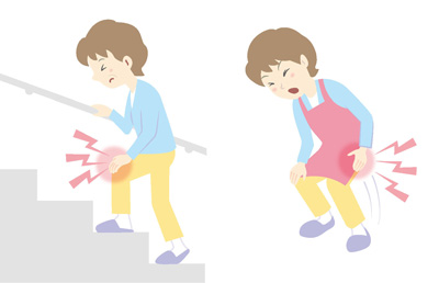 膝、股関節いずれも変形性関節症には「病期」というものがあります。病期を大きく初期・中期・末期と分けると、初期は、立ち上がる時など動かし始めに痛みを感じ始め、中期になると動作や歩行時に痛みを伴ない、末期になるとじっとしていても痛みを感じるようになります。膝の場合は、膝関節の内側から痛み始め、やがて膝全体が痛くなります。股関節の場合は、太ももの付け根(鼠径部:そけいぶ)のあたりから痛みが始めることが多いといわれています。安静にしていても痛みが数日間続くようなら、整形外科を受診し適切な診断、治療を早く受けたほうがいいでしょう。